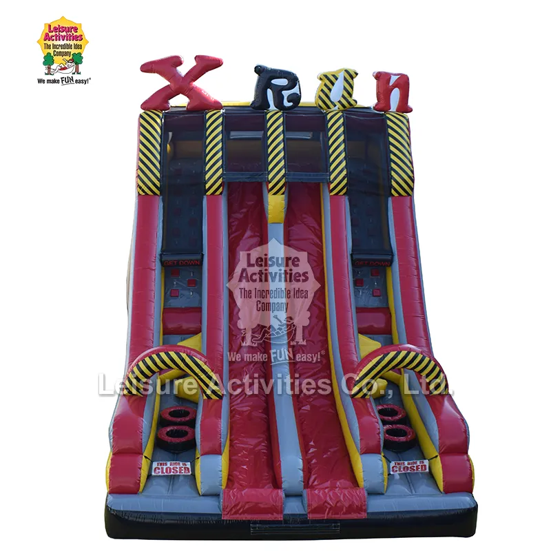 Leisure Activities® is the Manufacturer and Supplier of the Professional Inflatable Xtreme Fun Run Double Lane Slide. It features a dual parallel slide design, combining fun, large capacity and durability. It is easy to operate and suitable for all age groups.