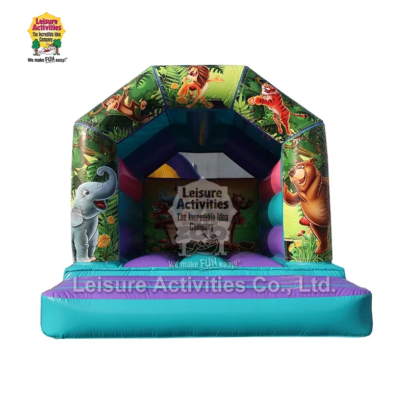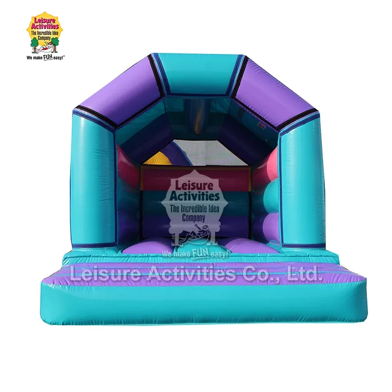 Leisure Activities® is a professional manufacturer and supplier of inflatable castles in China, with its own factory. Our Mini Inflatable Bouncy Castle A Frame Purple Teal With Roof can be customized with different themes according to various festivals and seasons. It is made of high-quality materials and sewn with double-thread technique, which is sturdy and durable and complies with EN14960 safety standards.