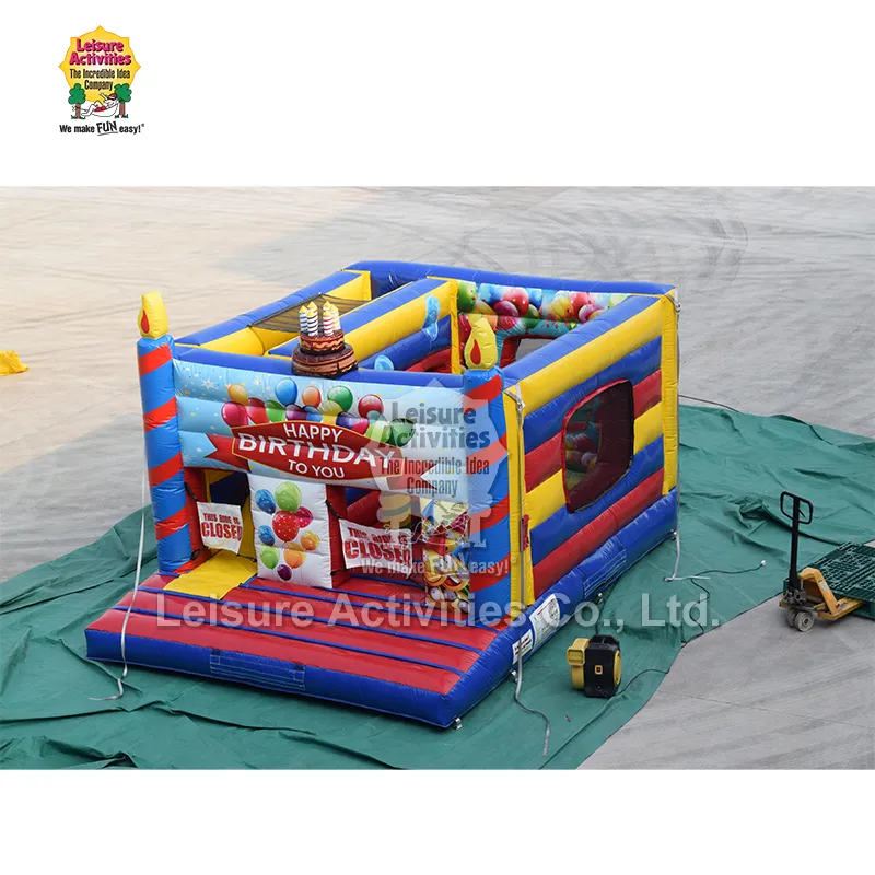 Leisure Activities® is a professional inflatable product manufacturer and supplier in China with over 30 years of experience in the inflatable industry. The Standard Inflatable Multiplay Bouncy Castles Happy Birthday is independently developed and produced by us. It is centered around a colorful birthday theme design, taking into account both safety and fun, and is specifically designed for various birthday parties and children's activities.